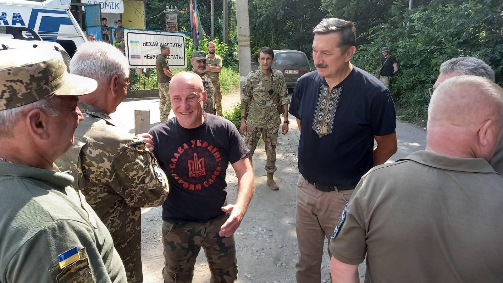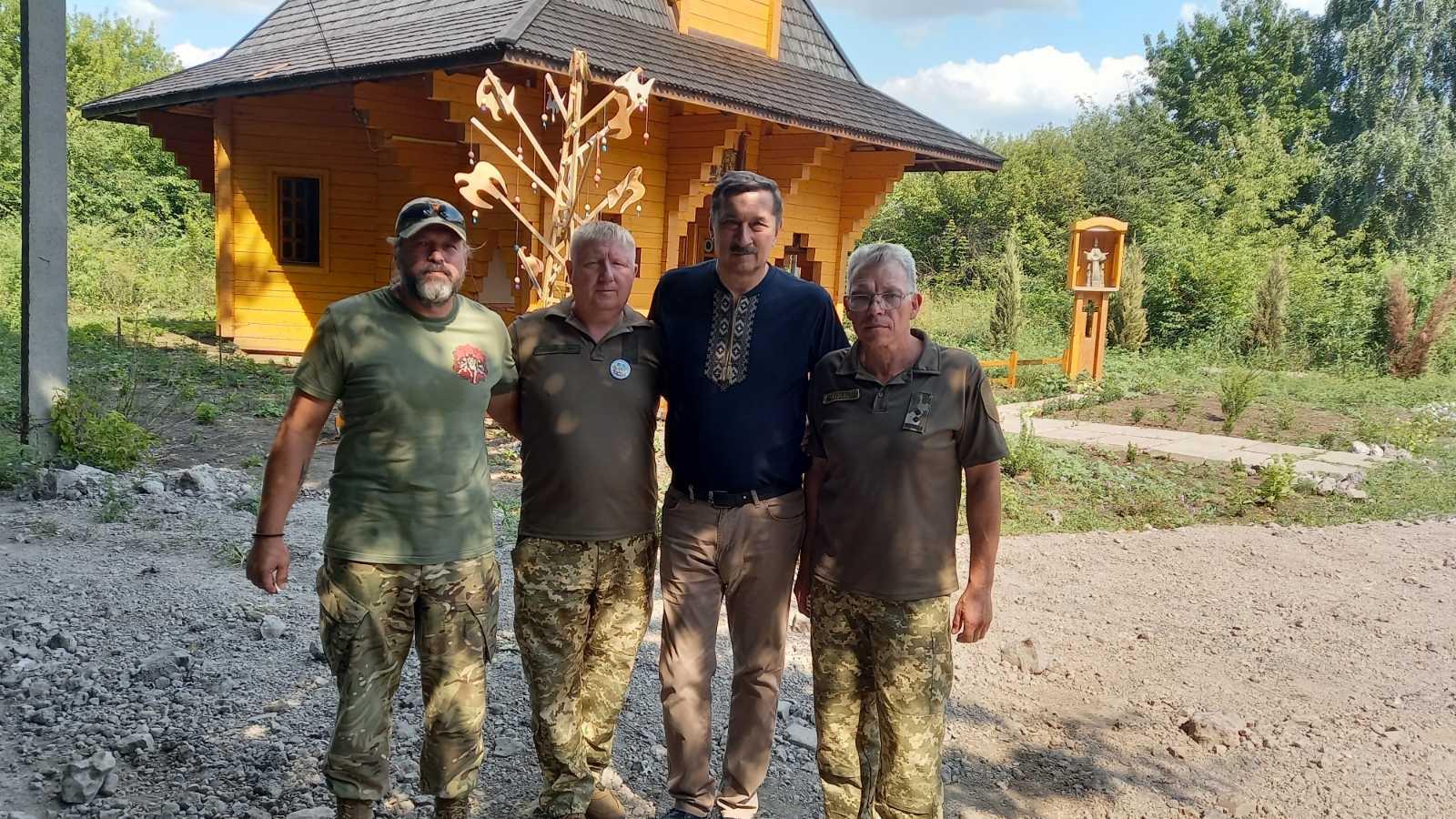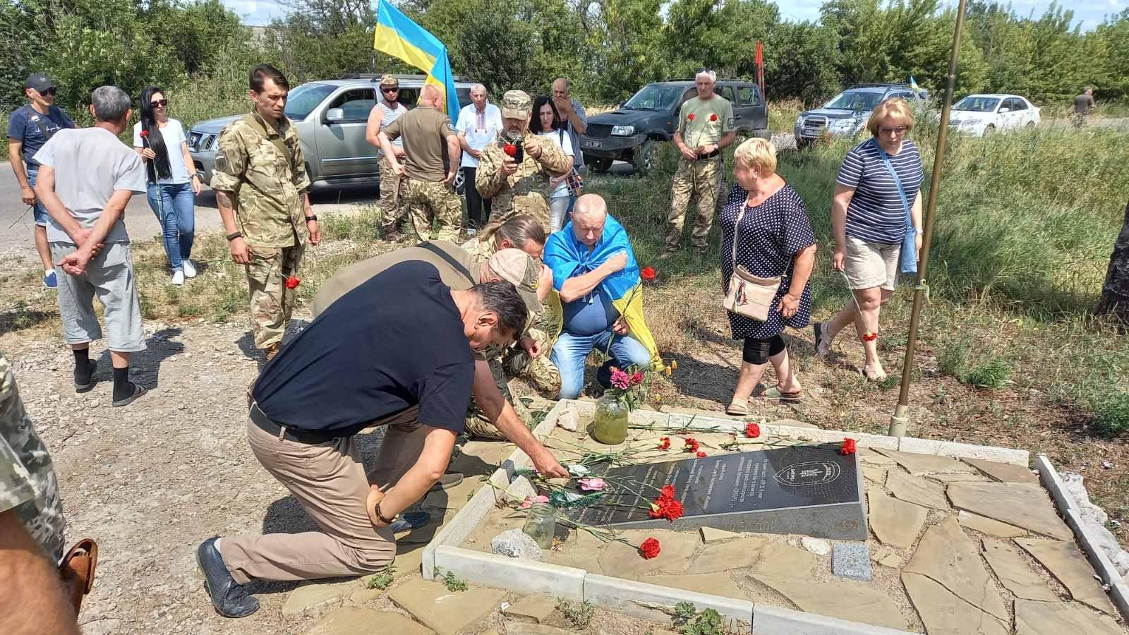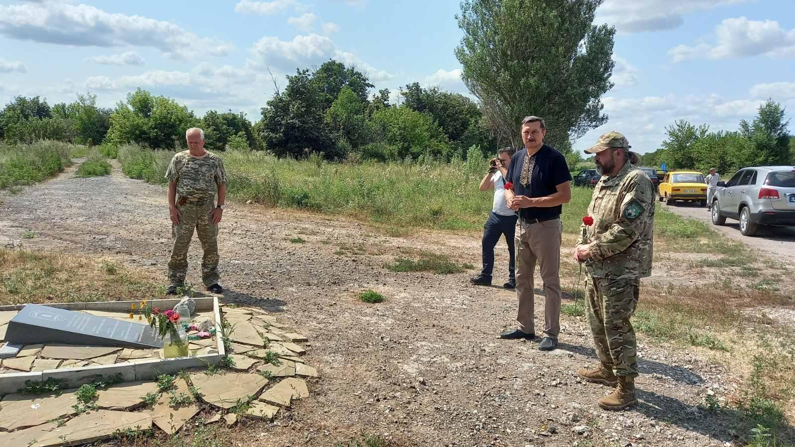 Далі рух патріотичної колони направився до меморіального хреста в село Карлівка для покладання квітів. Звідти відбулась піша прогулянка від Хреста до розташування медичного батальйону «Домик», де всі присутні долучились до панахиди за загиблими.