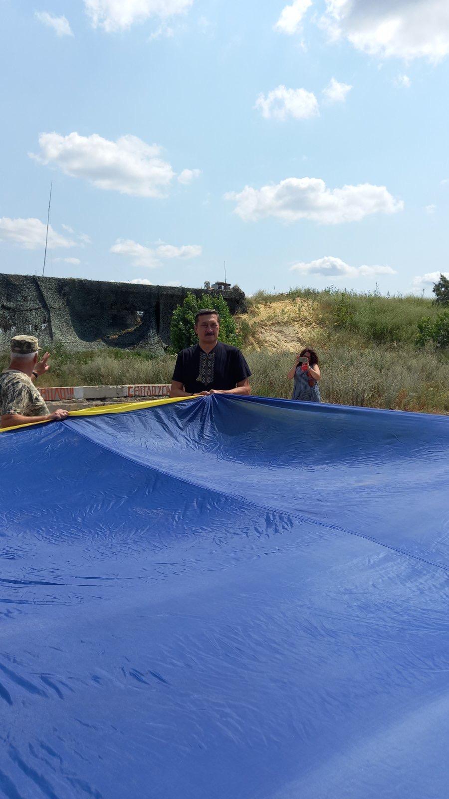 Перша зупинка відбулась біля «республіка мост» для розгортання великого прапору України. Це багаточисельний масштабний захід патріотів своєї країни, які ніколи не забудуть подвигу та незламного духу своїх побратимів.
