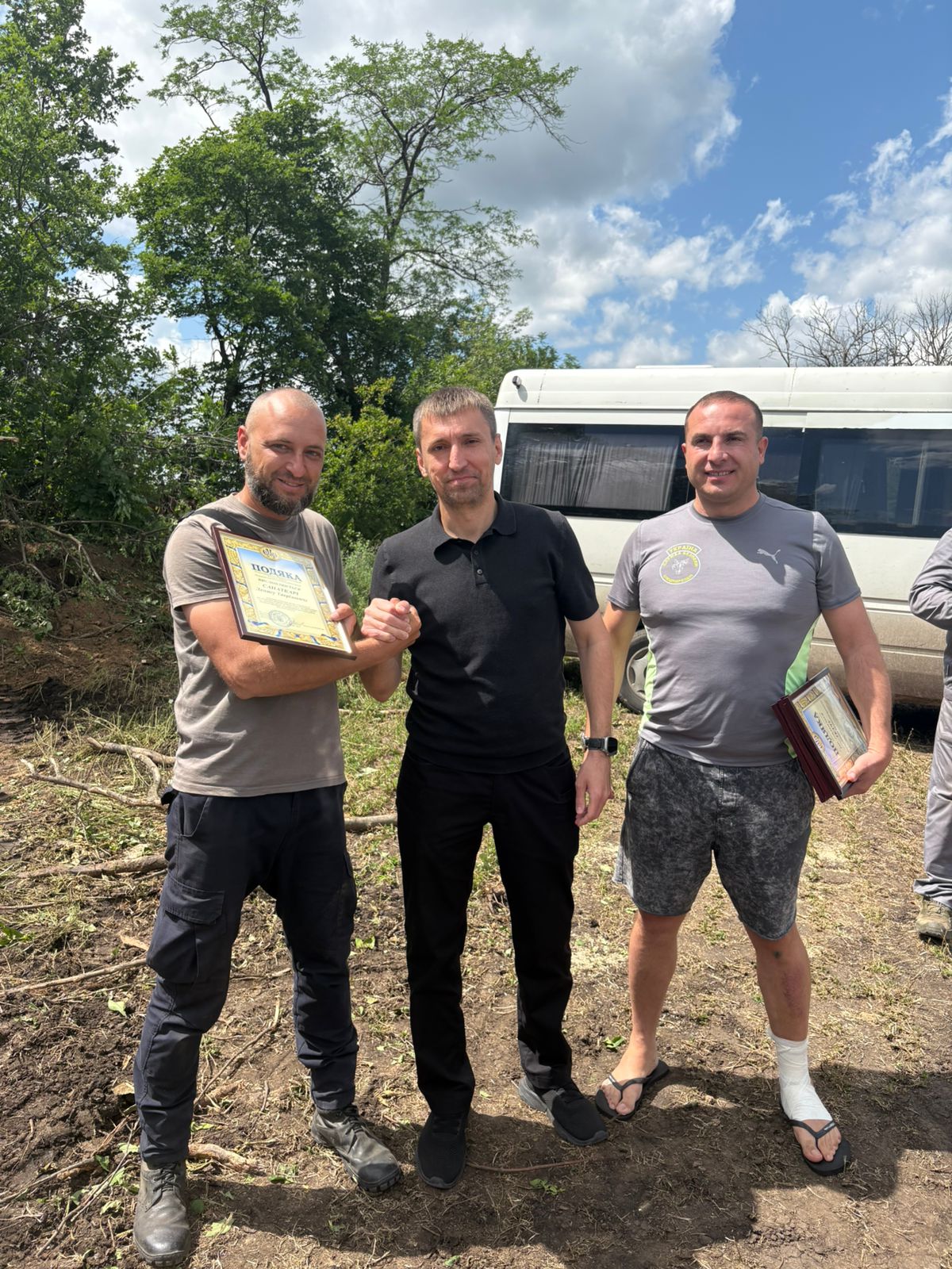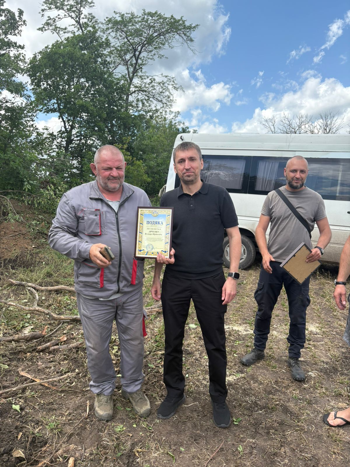 За вагомий особистий внесок в спорудження та обладнання фортифікаційних, інших інженерних споруд для здійснення відсічі та стримування збройної агресії російської федерації на території Покровського району Донецької області вручили подяки Покровської райдержадміністрації та Криворізької сільської військової адміністрації та висловили слова вдячності.