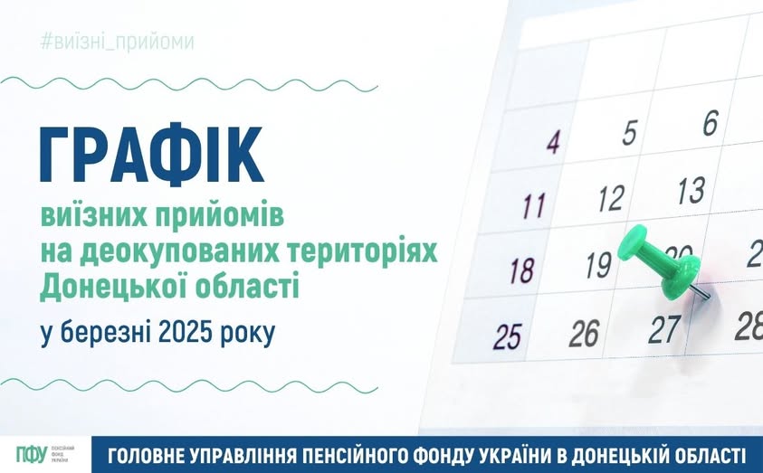 ГРАФІК ПРОВЕДЕННЯ ВИЇЗНИХ ПРИЙОМІВ ГРОМАДЯН НА ДЕОКУПОВАНИХ ТЕРИТОРІЯХ ДОНЕЦЬКОЇ ОБЛАСТІ В БЕРЕЗНІ 2025 РОКУ