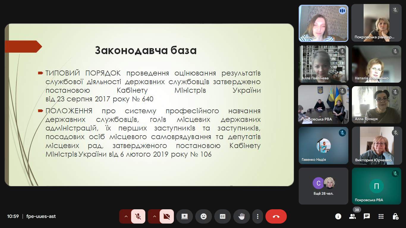 В.о. начальника служби управління персоналом райдержадміністрації Вікторія Чернишова ознайомила присутніх з порядком роботи зі скаргами, поданими державними службовцями райдержадміністрації керівнику апарату райдержадміністрації щодо можливого порушення наданих їм Законом України «Про державну службу» прав або виникнення перешкод у реалізації права на державну службу. Також проінформувала про підготовку до проведення оцінювання результатів службової діяльності державних службовців в райдержадміністрації.
