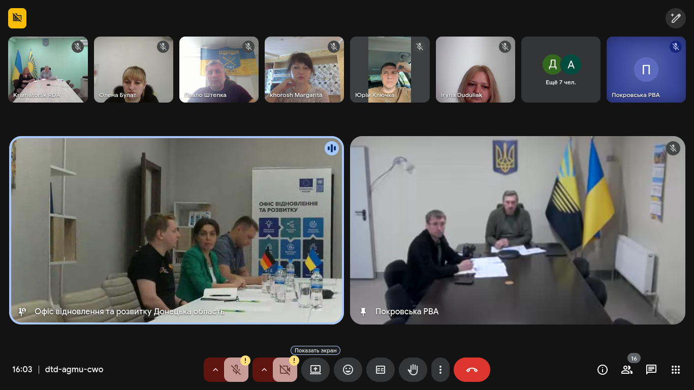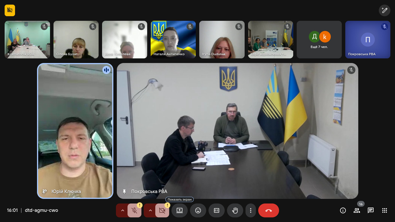 Заступник голови Донецької облдержадміністрації Юрій Ключка провів робочу зустріч з представниками відокремленого підрозділу іноземної неурядової організації «СПІЛКА РОБОЧИХ САМАРИТЯН НІМЕЧЧИНИ З.С.» (ASB Ukraine). Участь у зустрічі в онлайн-форматі взяли в.о. голови Покровської райдержадміністрації, начальника районної військової адміністрації Володимир Колосов разом із заступником голови райдержадміністрації Олександром Фоменко.