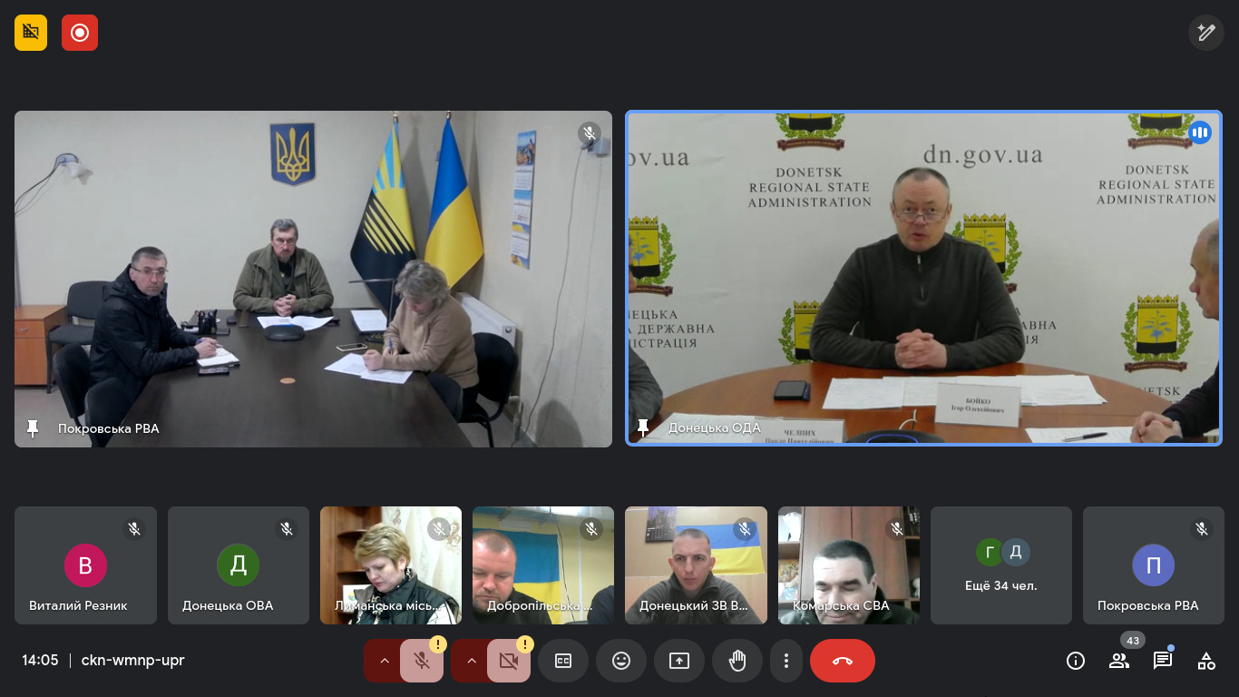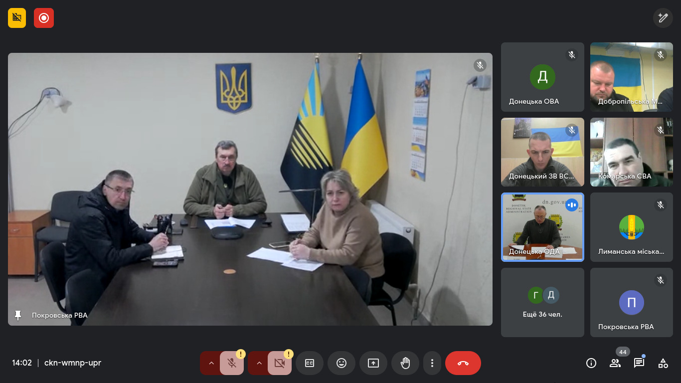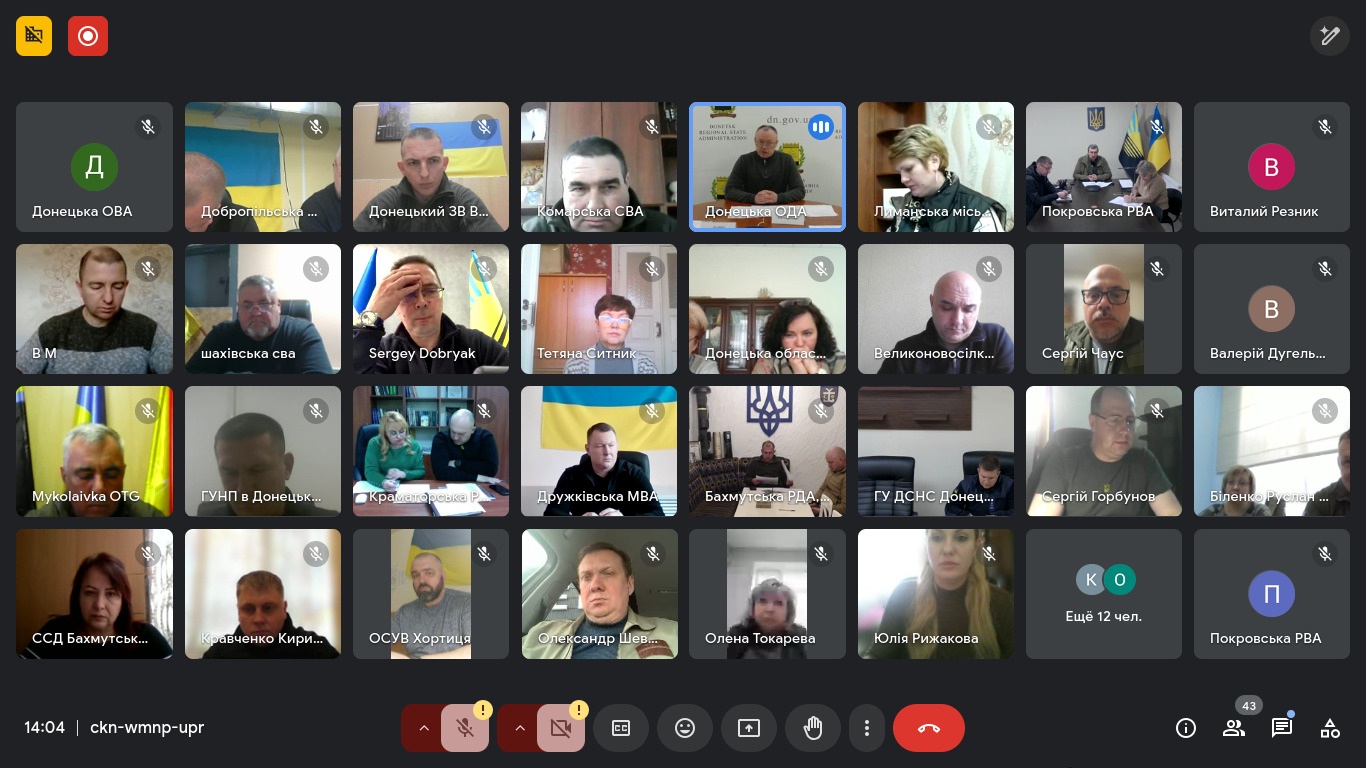 Участь в онлайн-нараді з питань посилення заходiв з органiзацiї та проведення обов’язковоi евакуацiї в примусовий спосiб дiтей з їх батьками з населених пунктiв Донецької областi