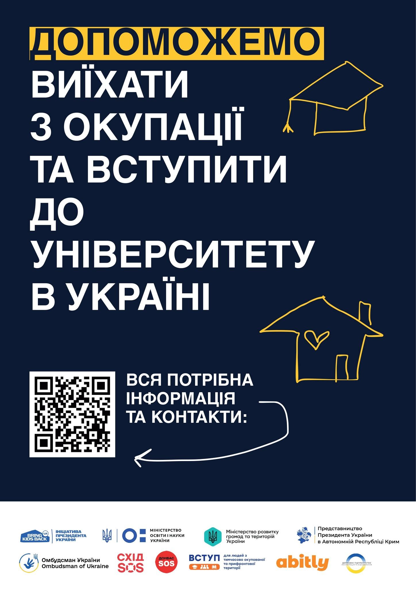 Детальна інформація про можливість безпечно виїхати з ТОТ, умови вступу до закладів вищої освіти в Україні та контакти для звʼязку зібрана за цим посиланням.