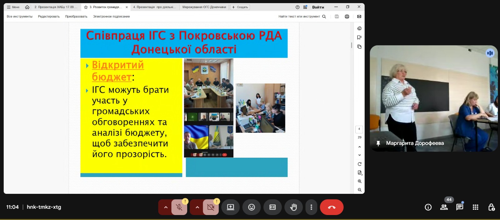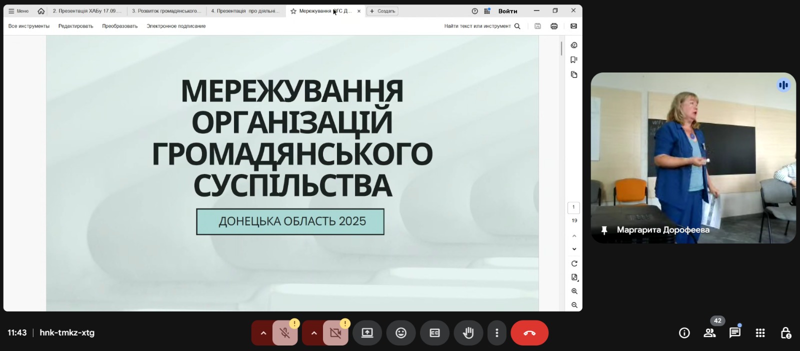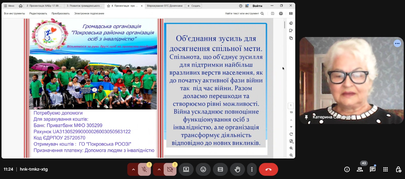 Було розглянуто напрями діяльності ГО «Дніпровська ліга соціальних працівників», співпрацю з громадами Дніпропетровщини та Донеччини, а також роботу ХАБу розвитку соціальних послуг. Окрему увагу було приділено розвитку громадянського суспільства, залученню громадськості до реалізації соціальних питань ГО «Відродження», діяльності ГО «Покровська районна організація осіб з інвалідністю» та проєкту «Мережування ОГС Донеччини».