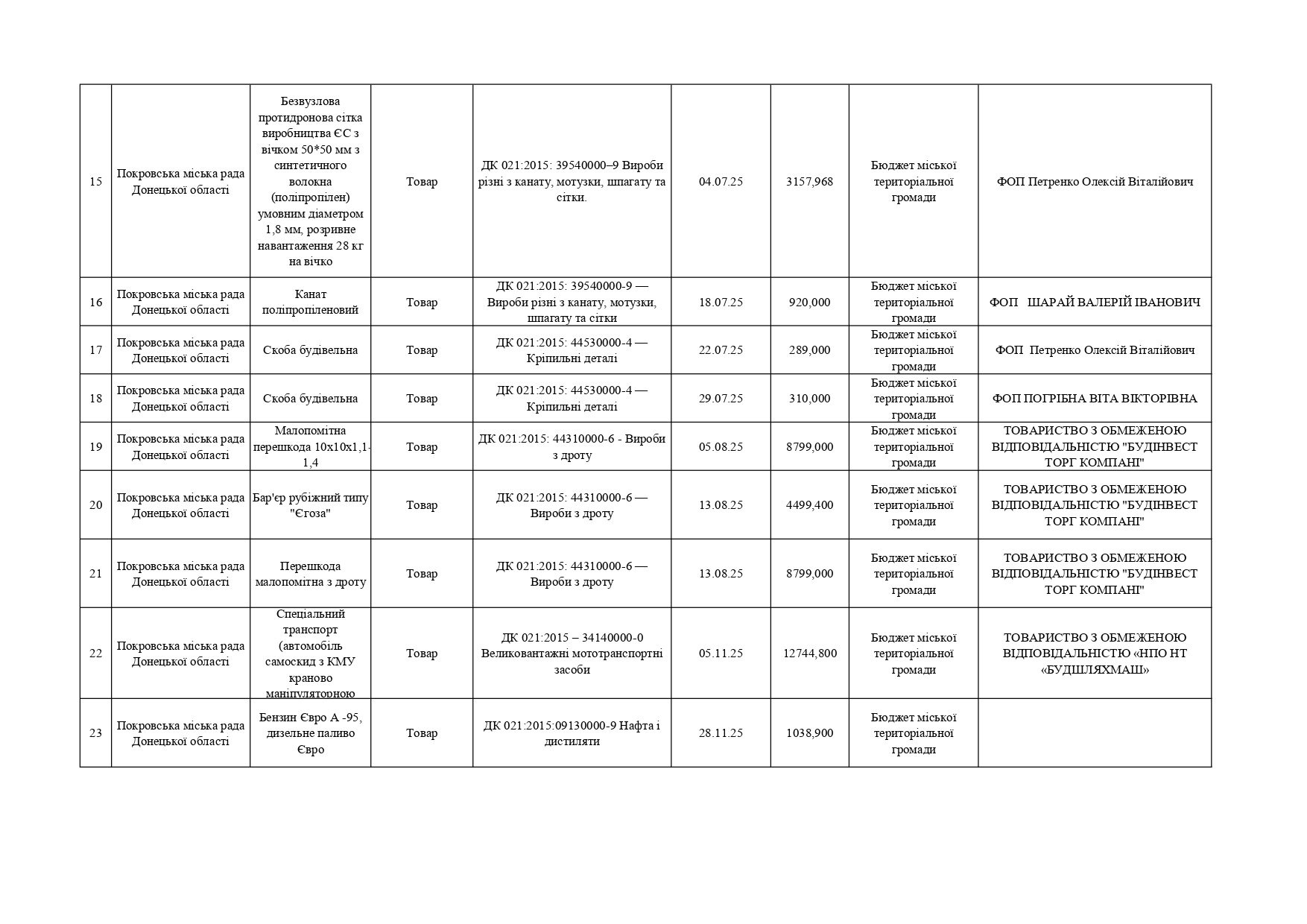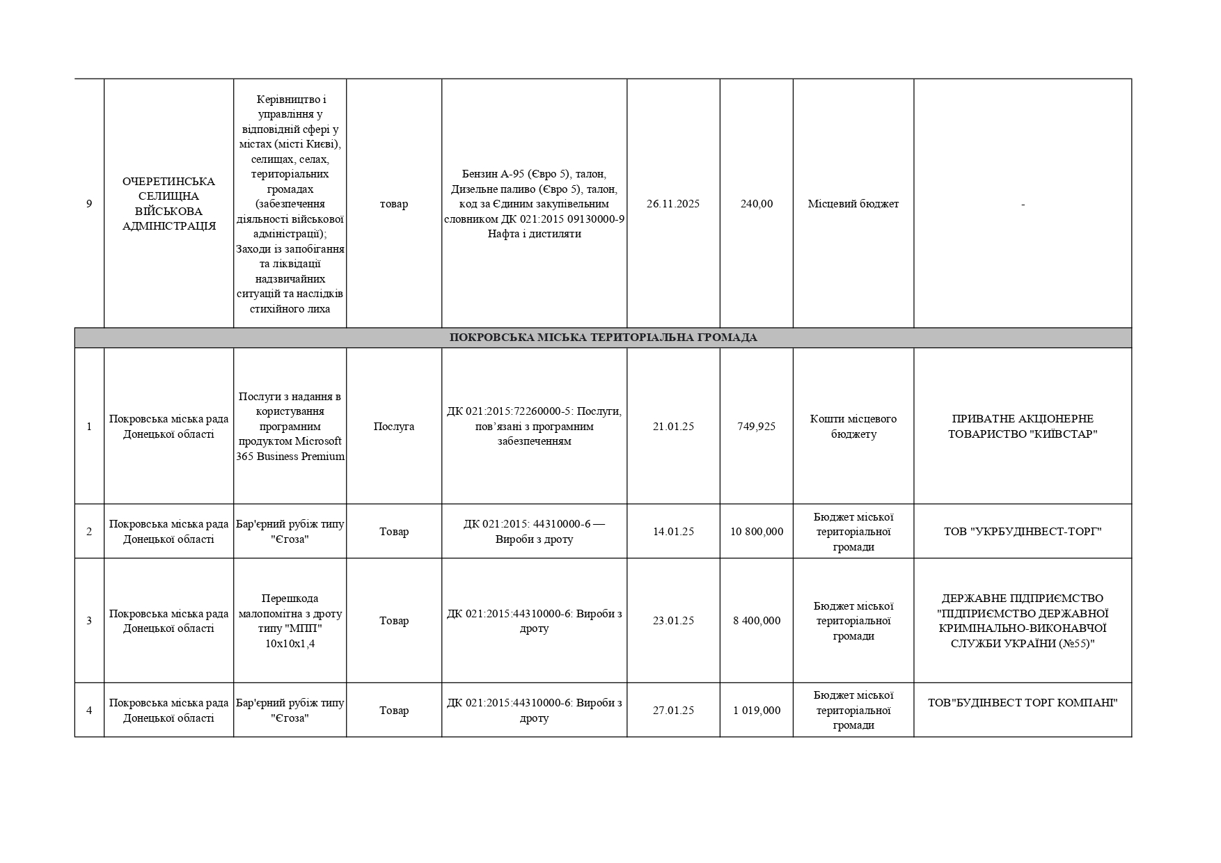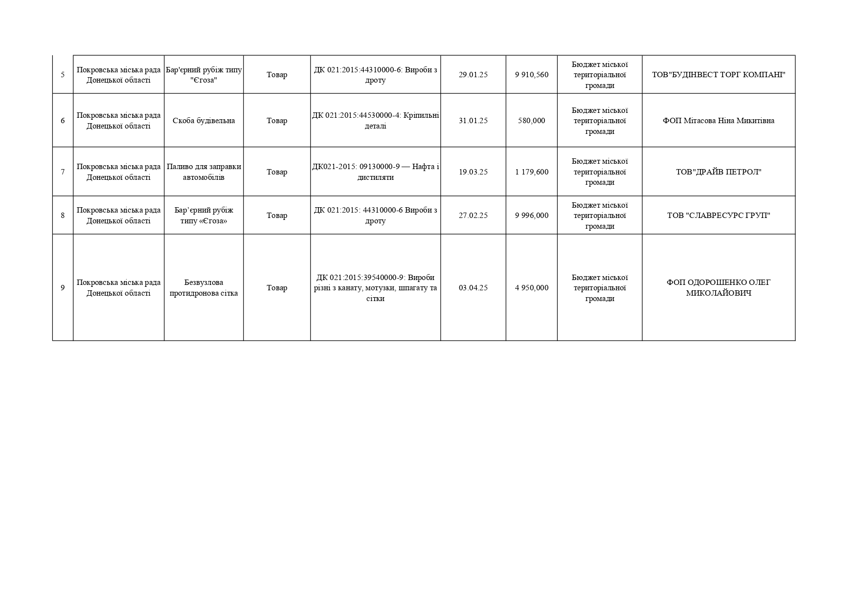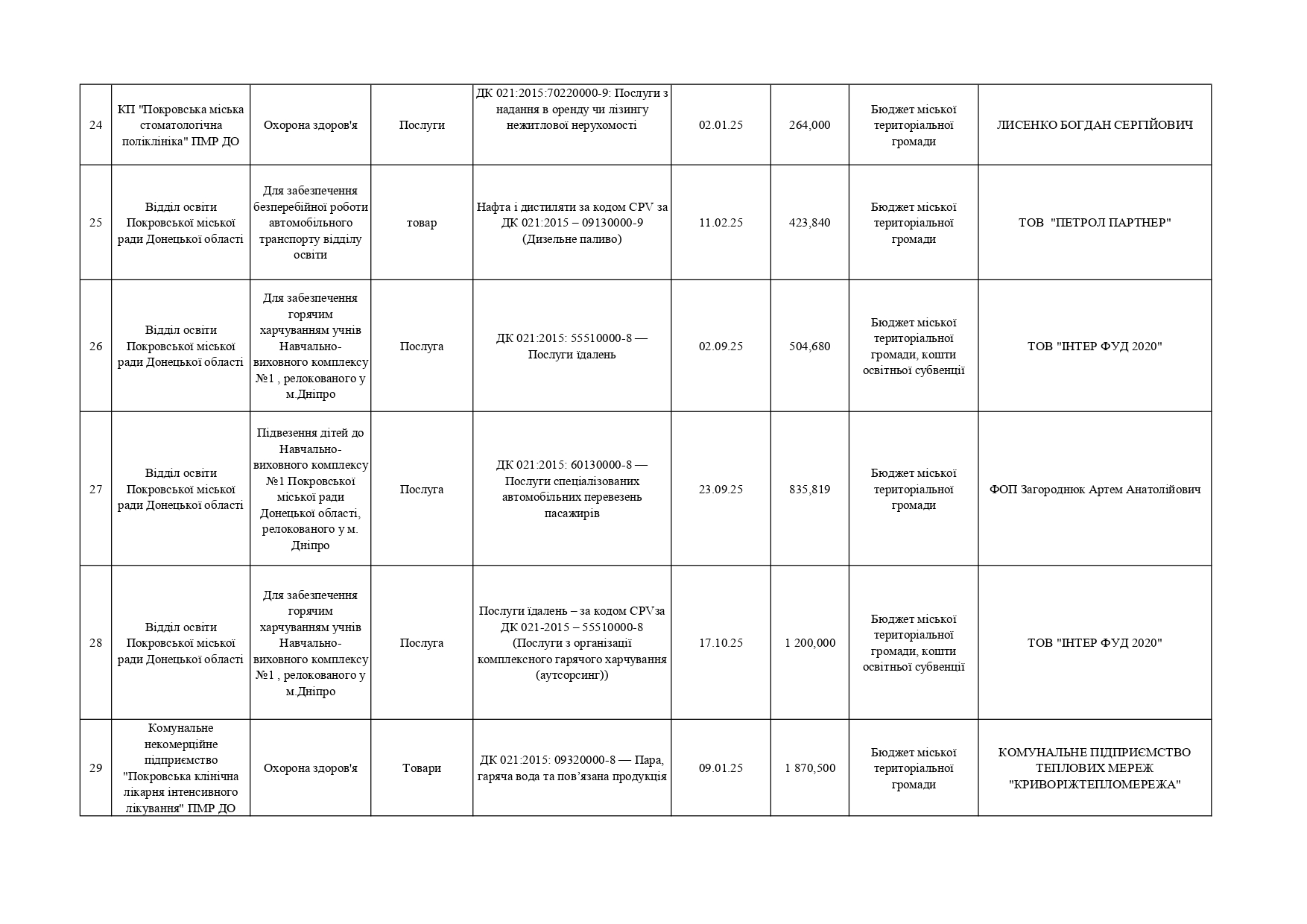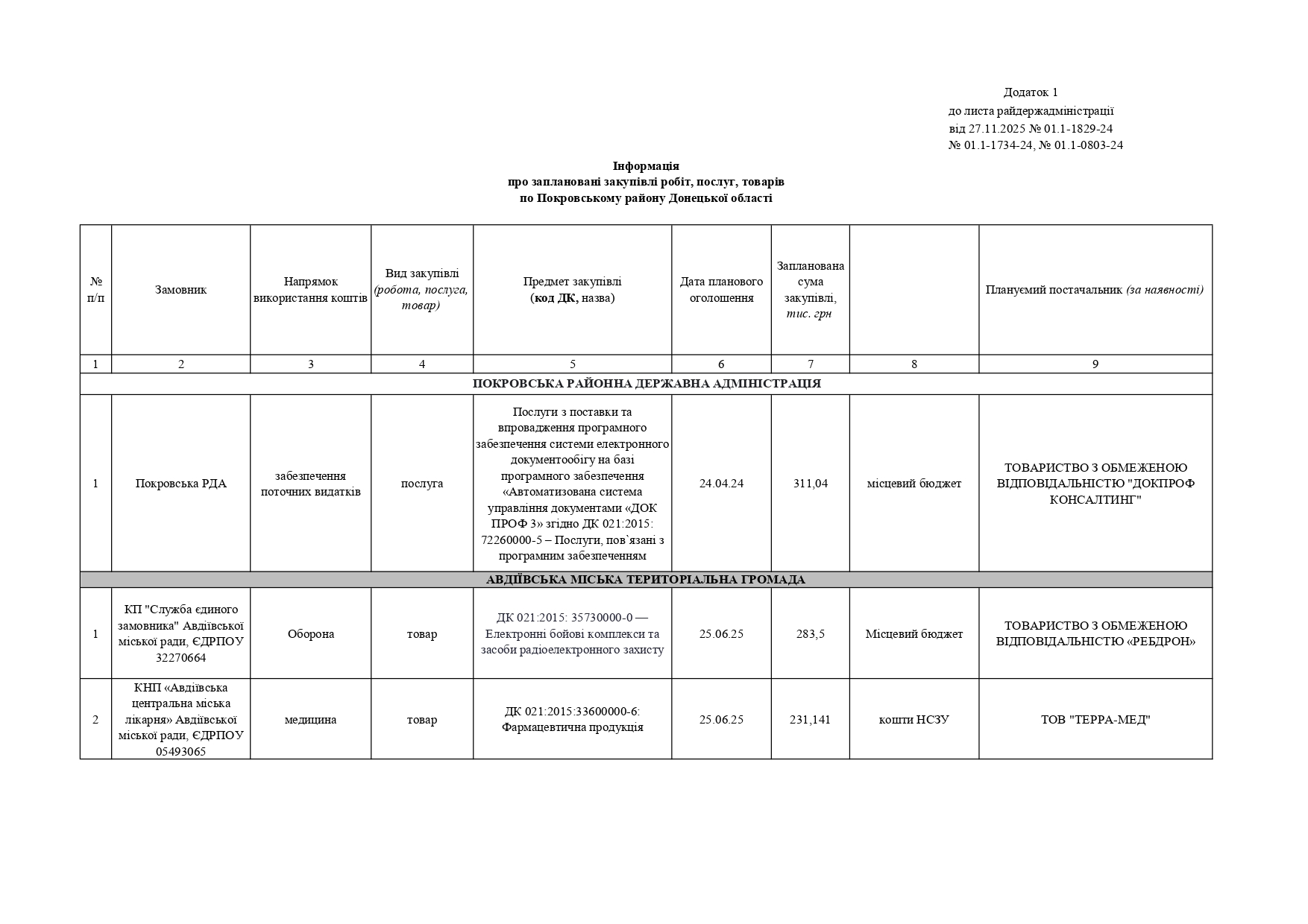 Плани публічних закупівель по Покровському району