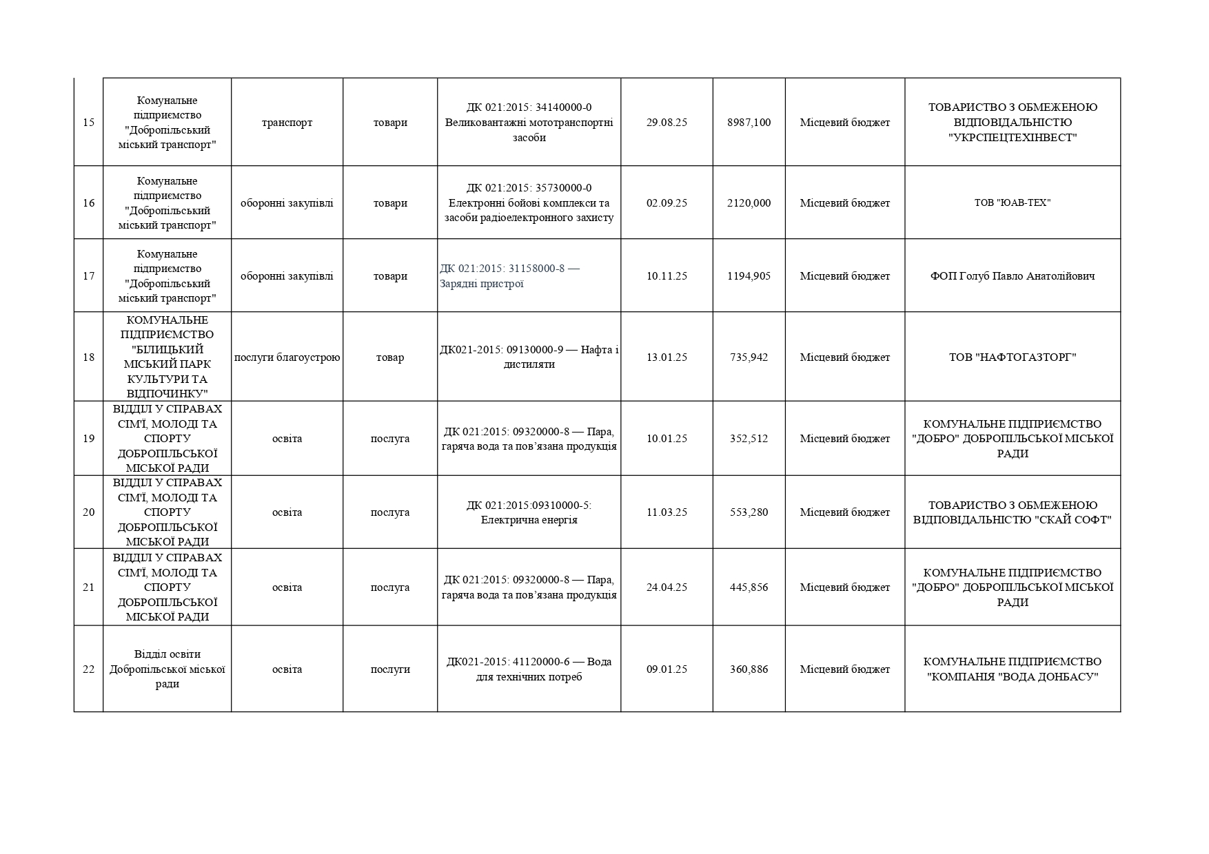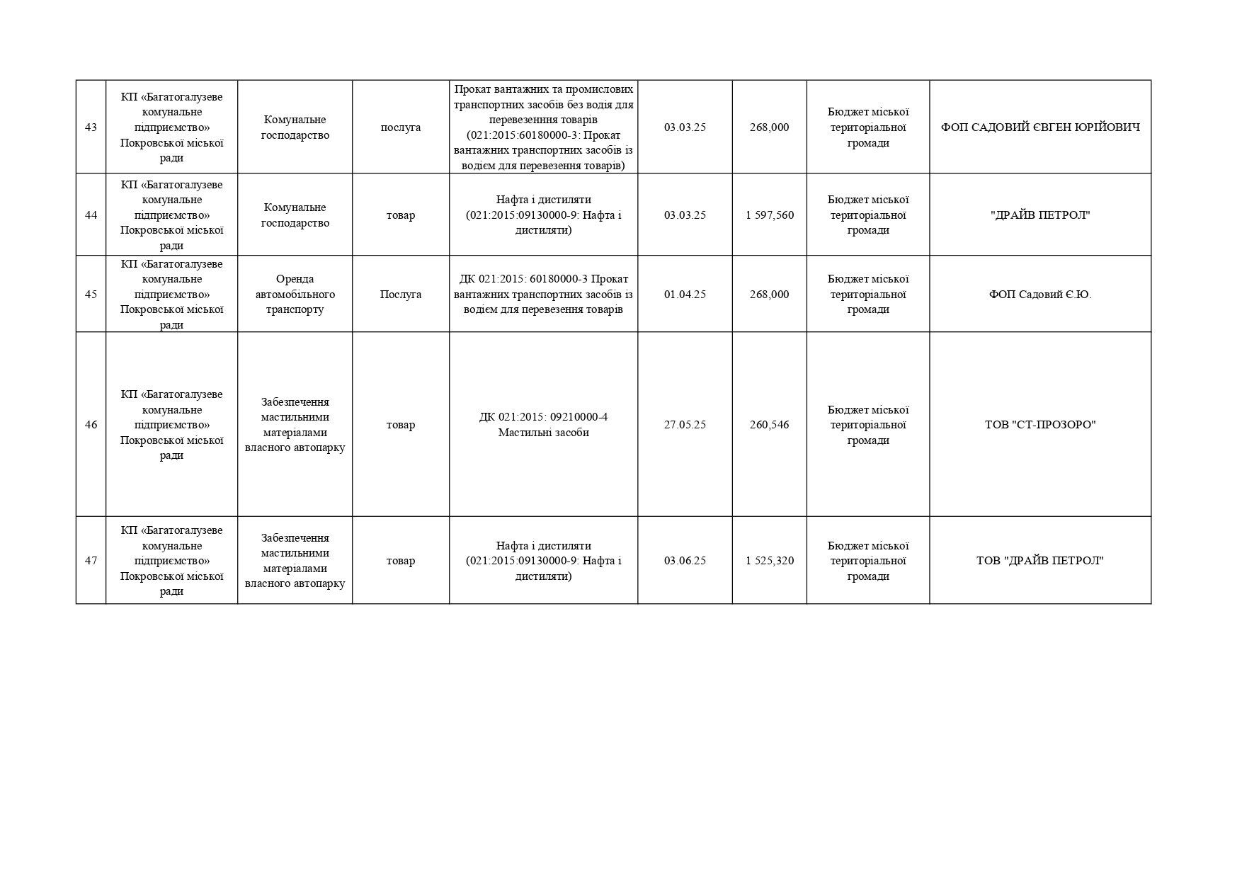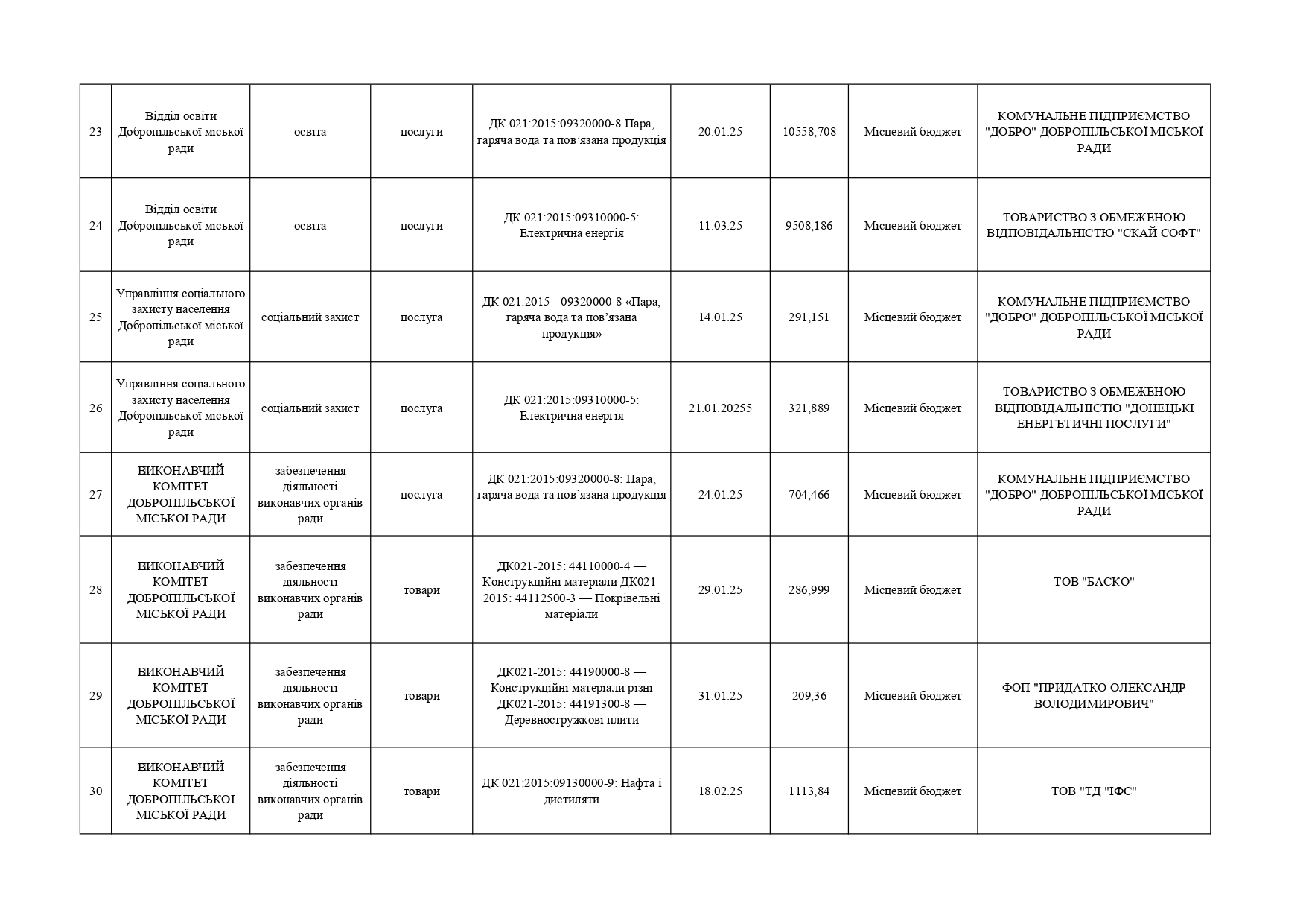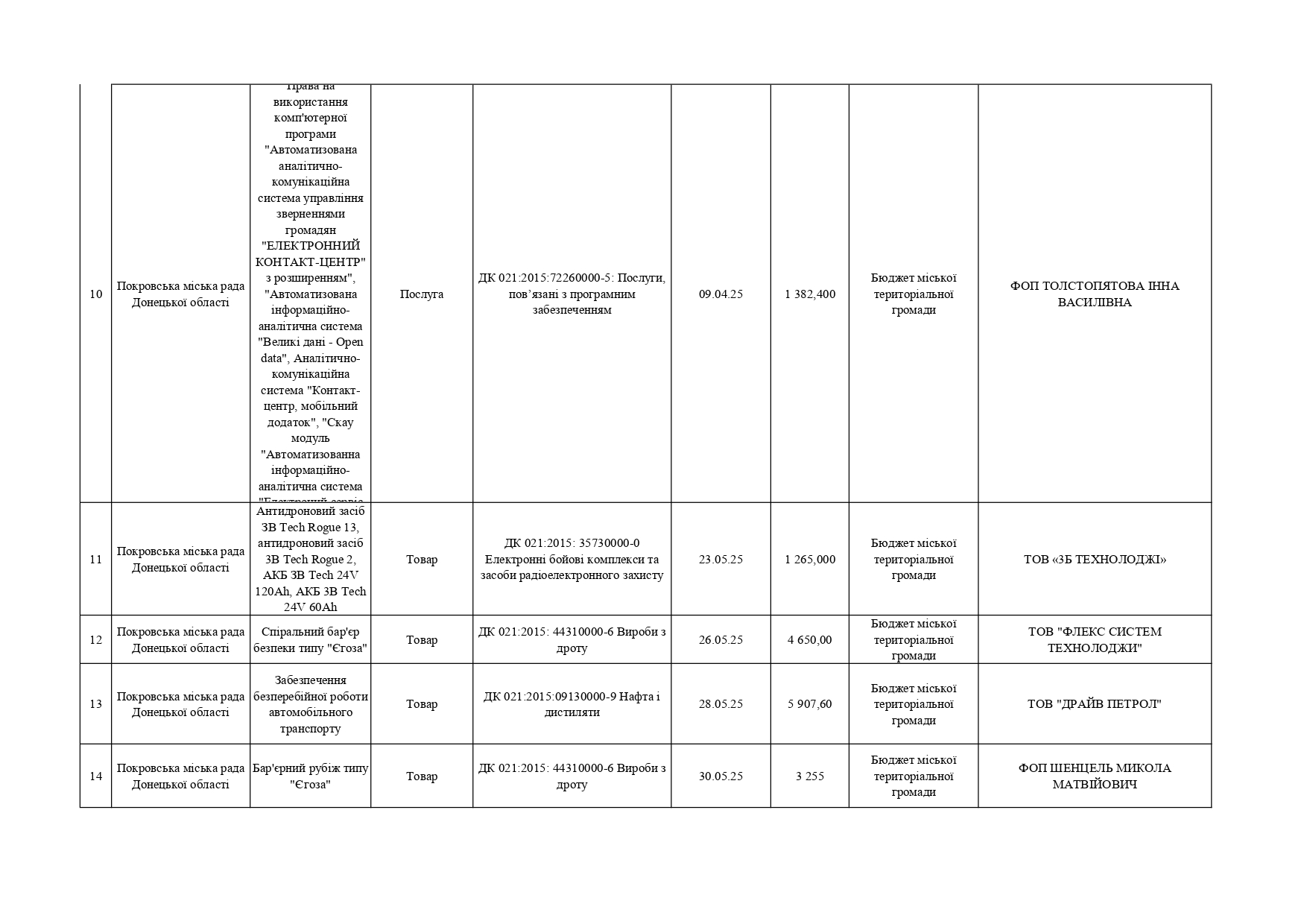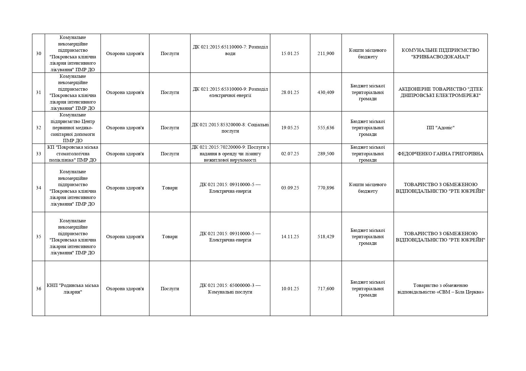 Плани публічних закупівель по Покровському району
