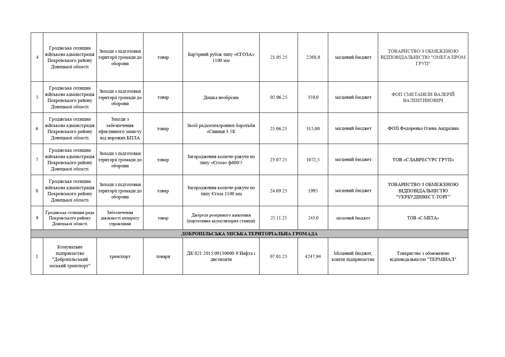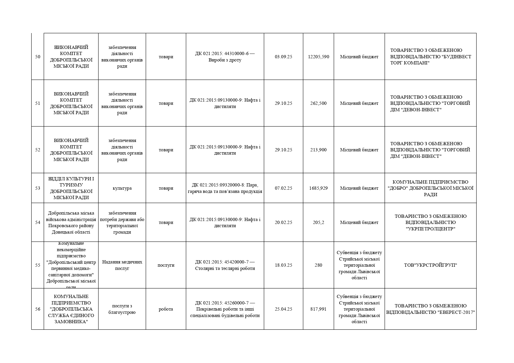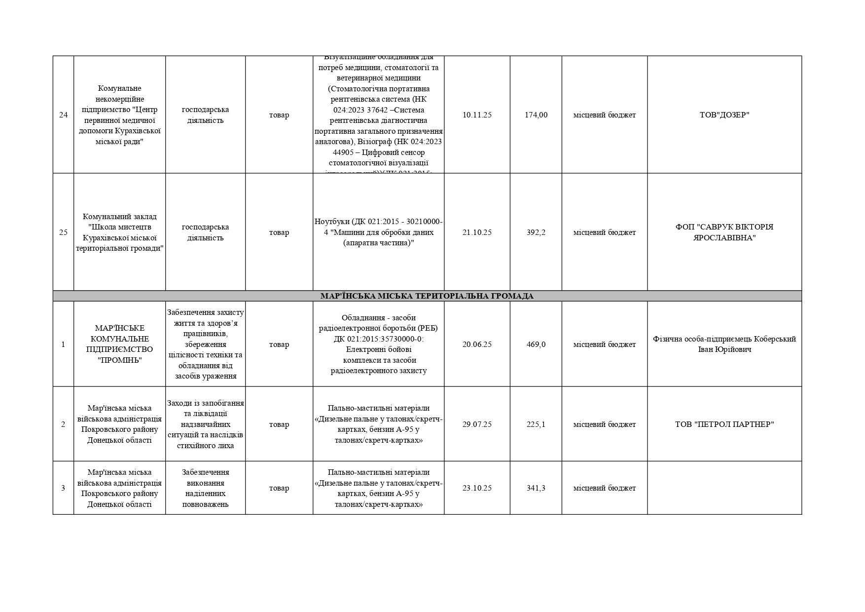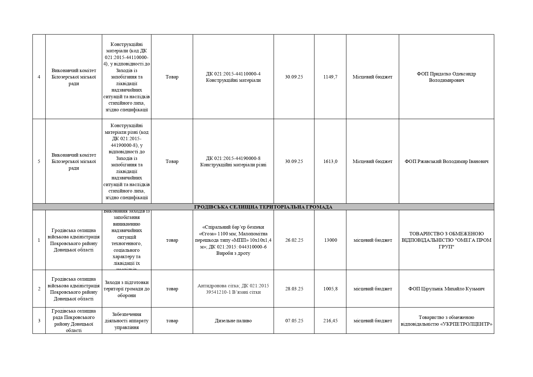 Плани публічних закупівель по Покровському району