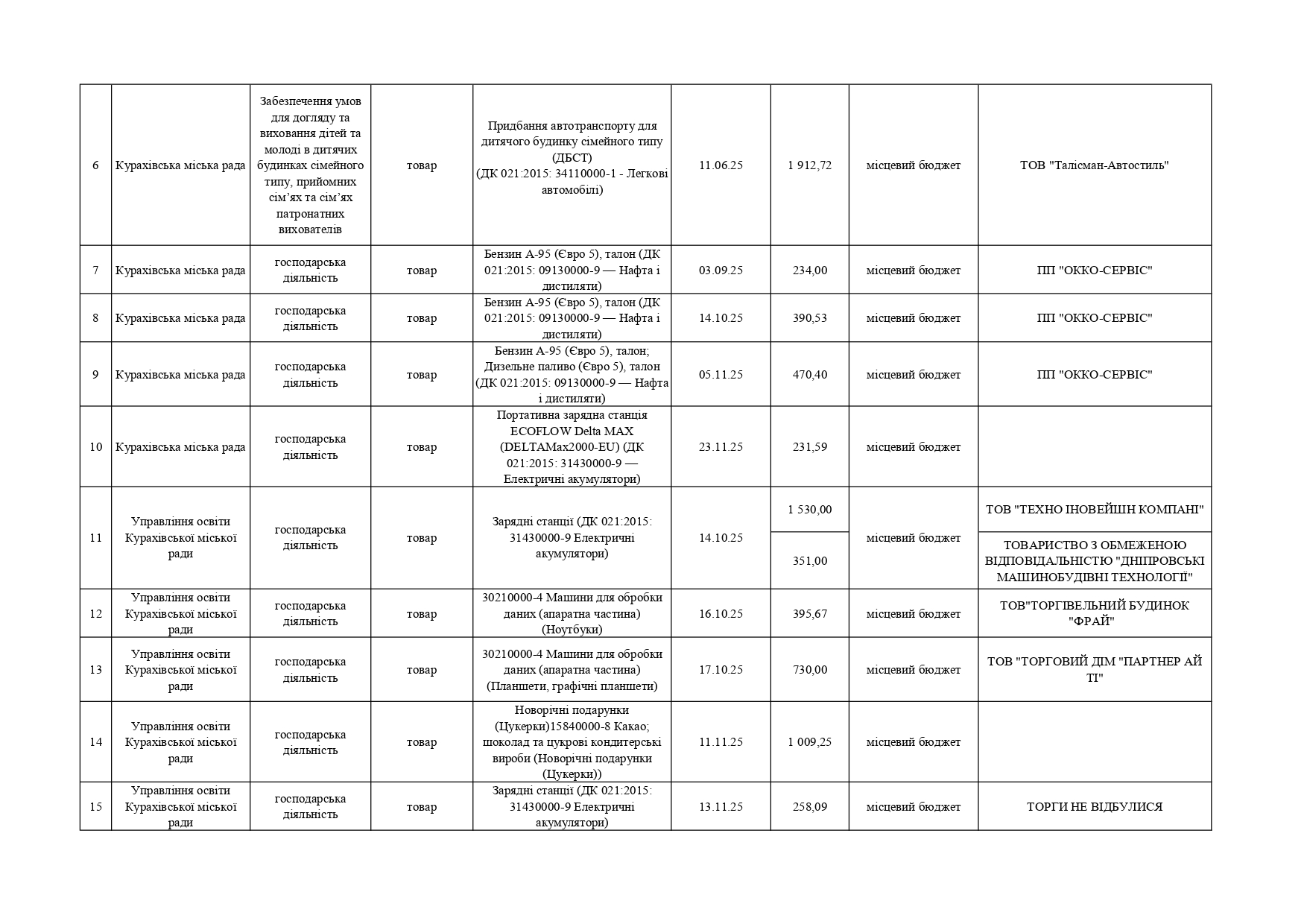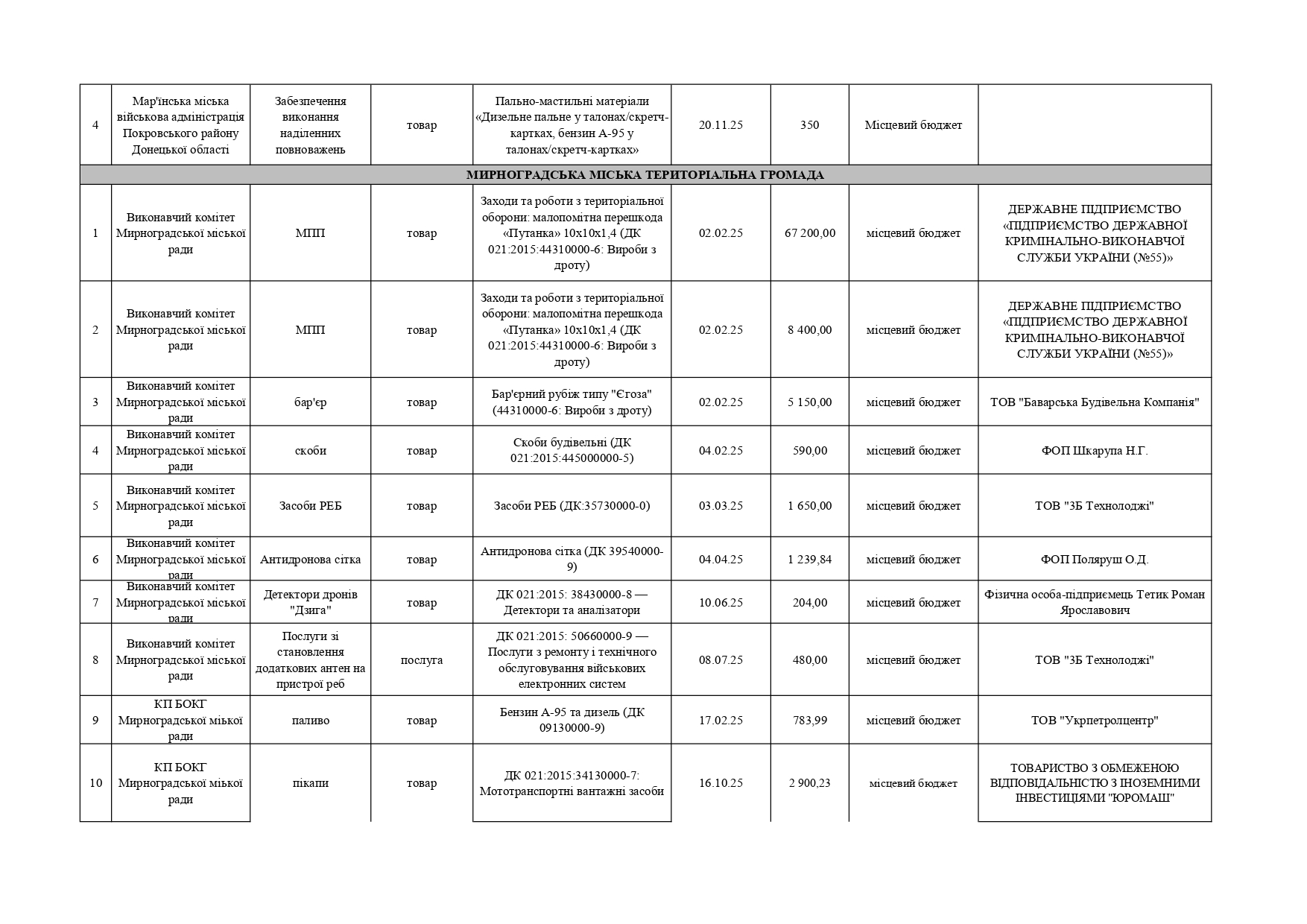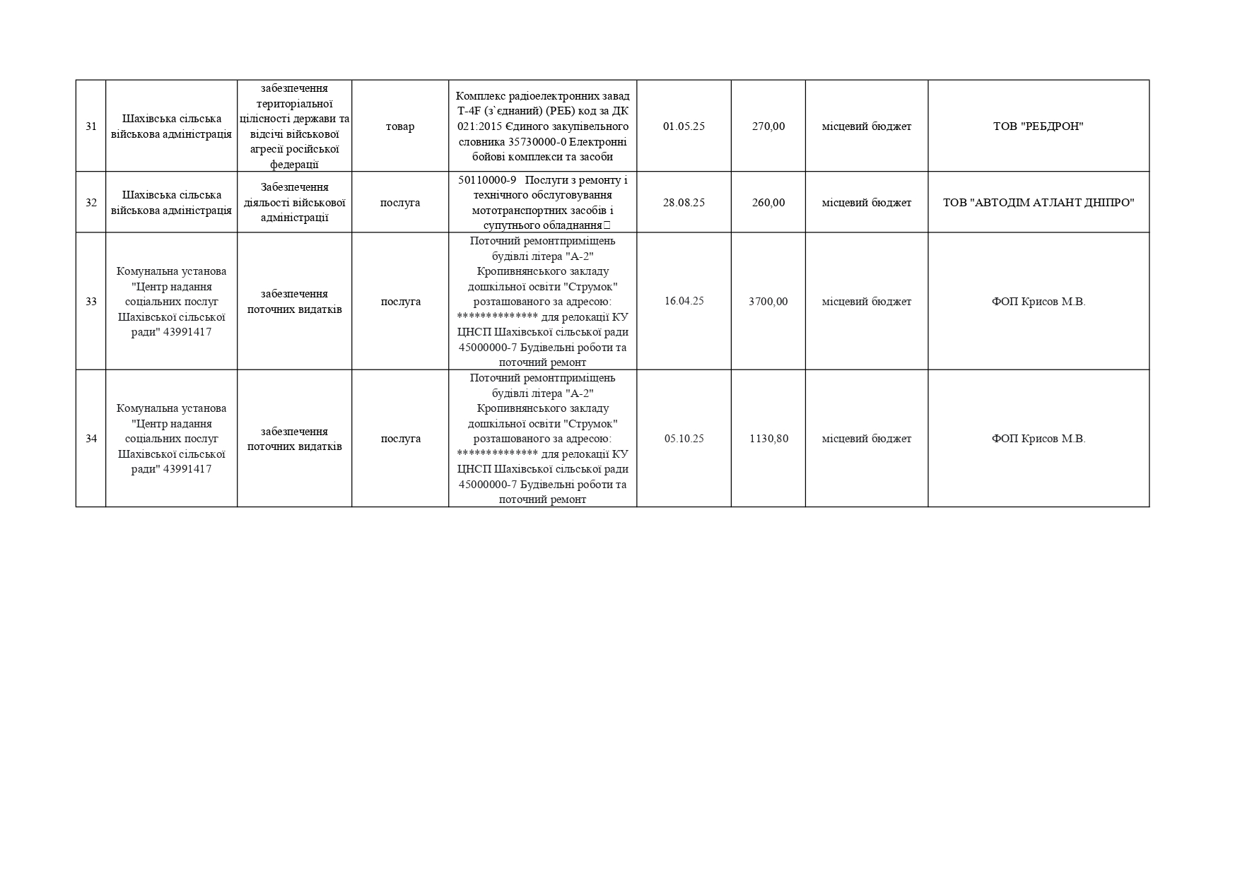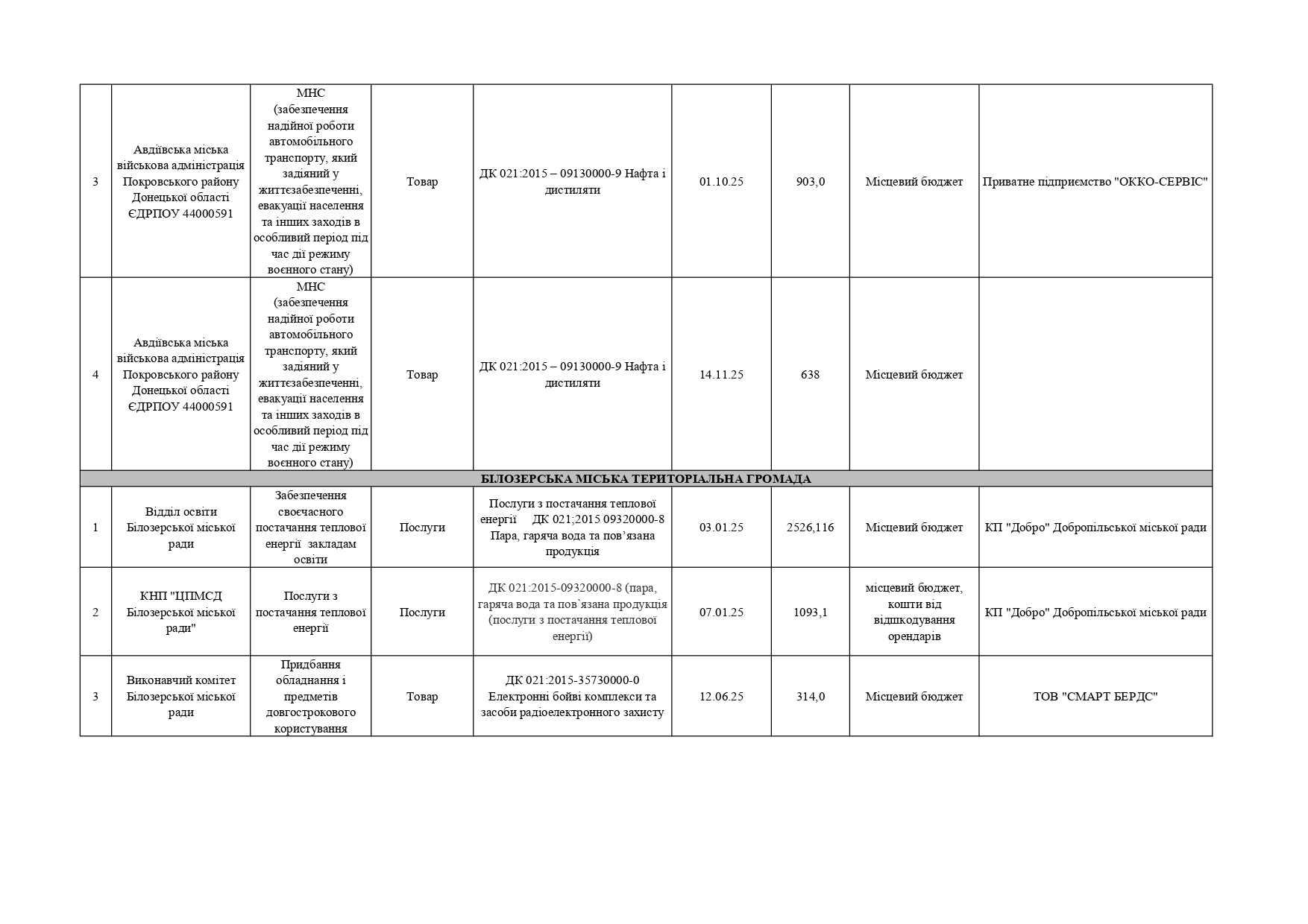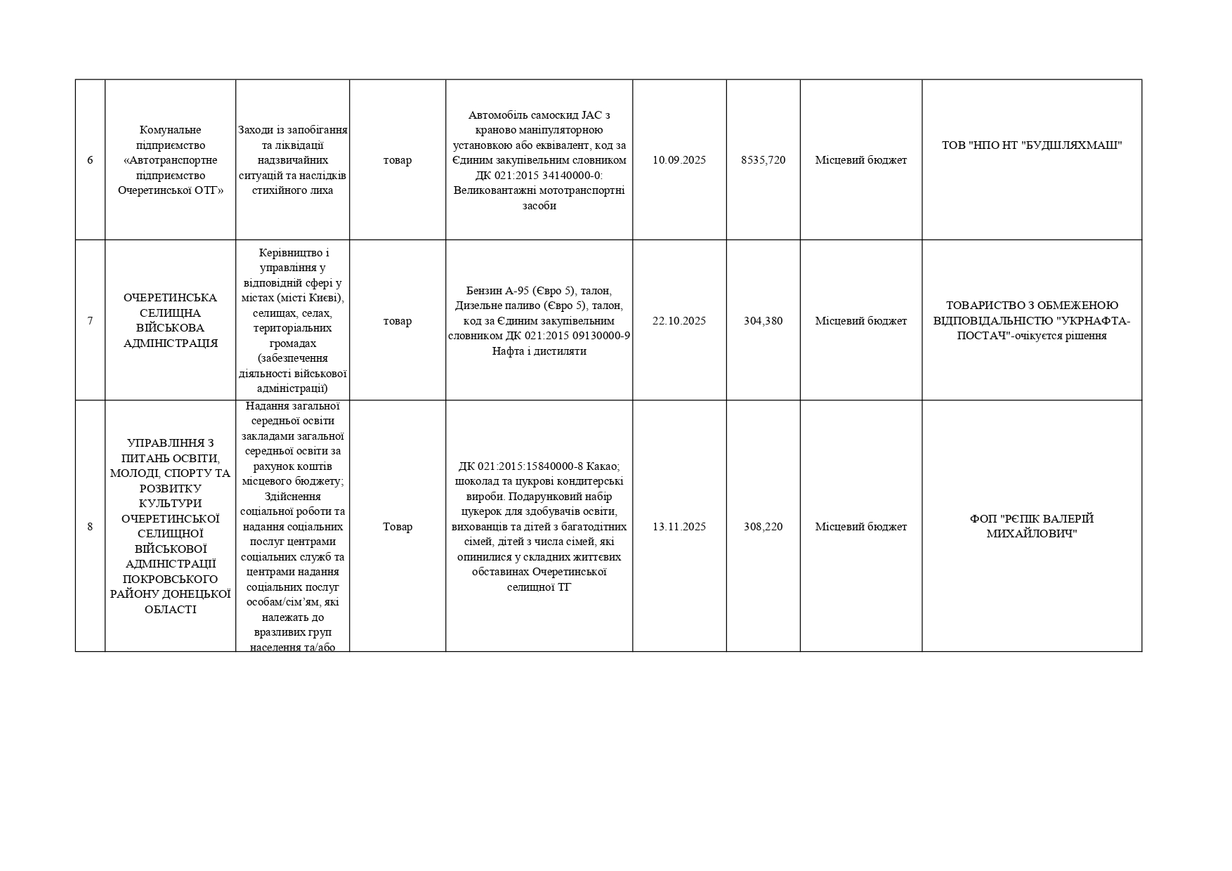 Плани публічних закупівель по Покровському району