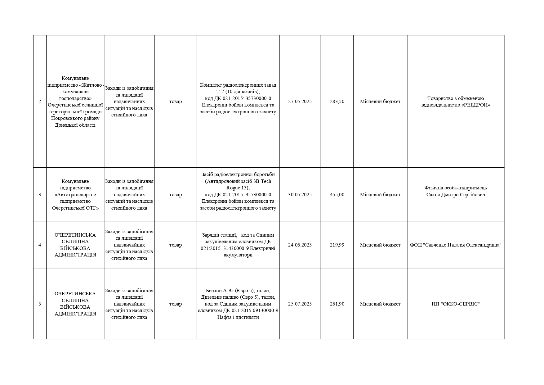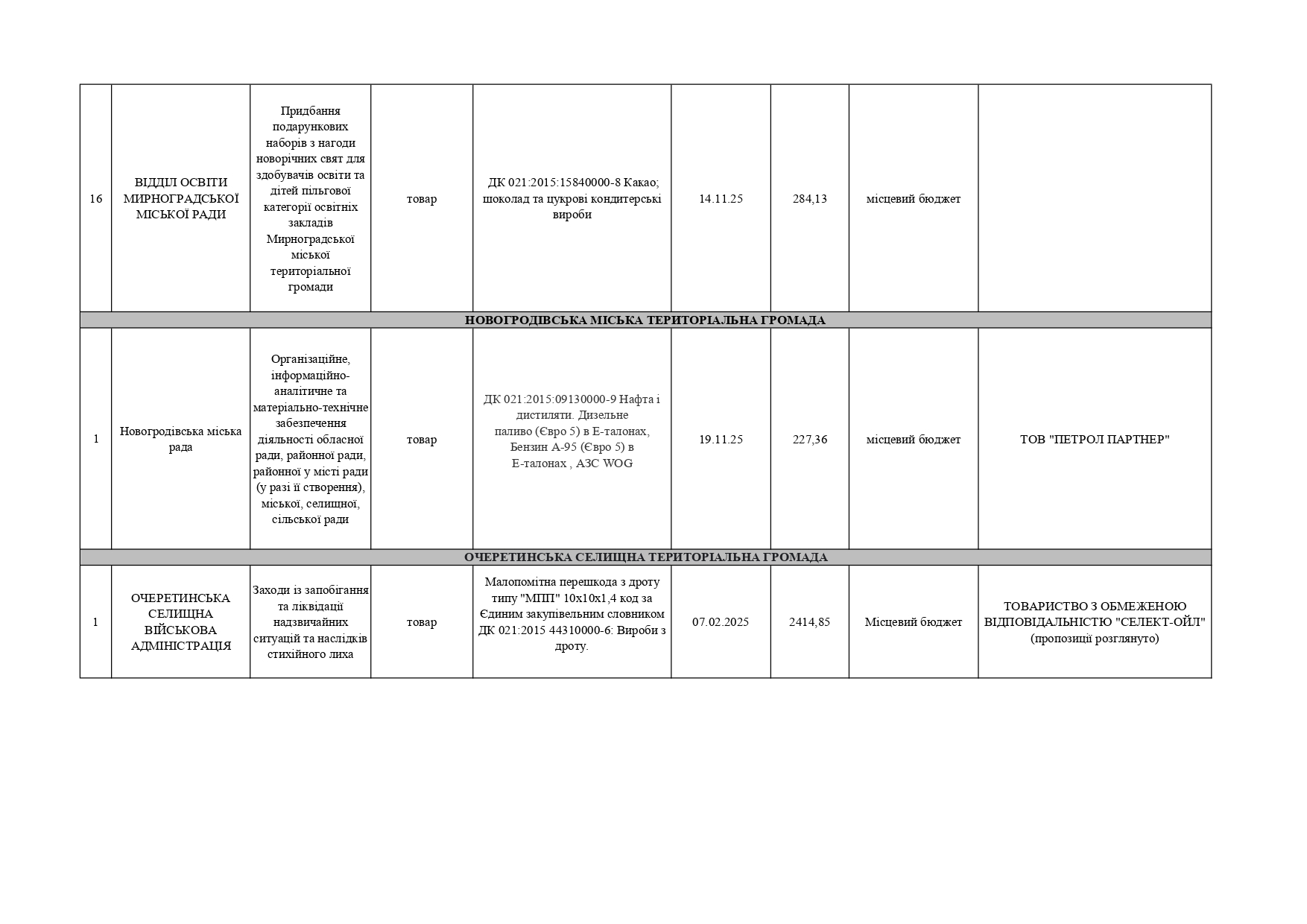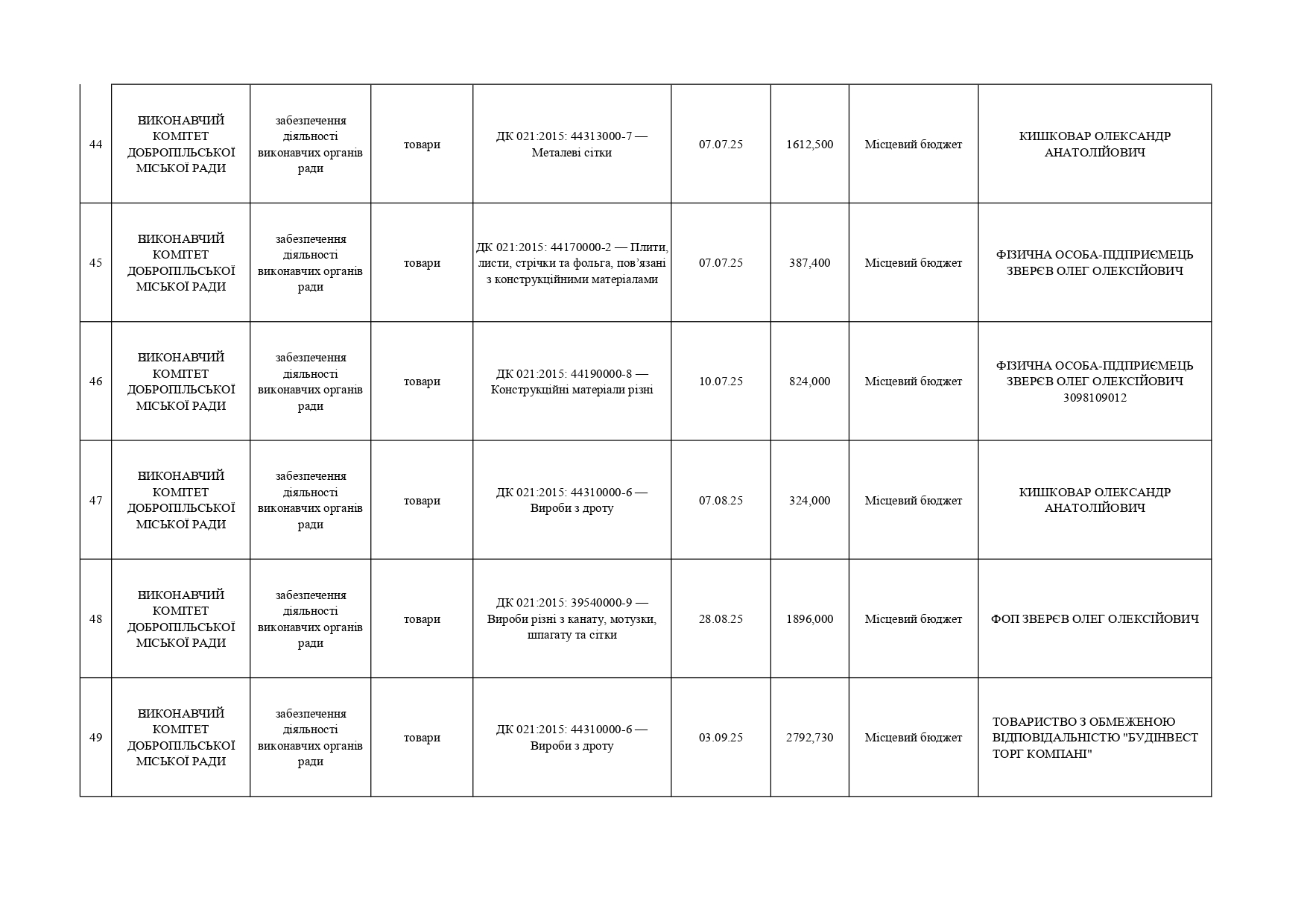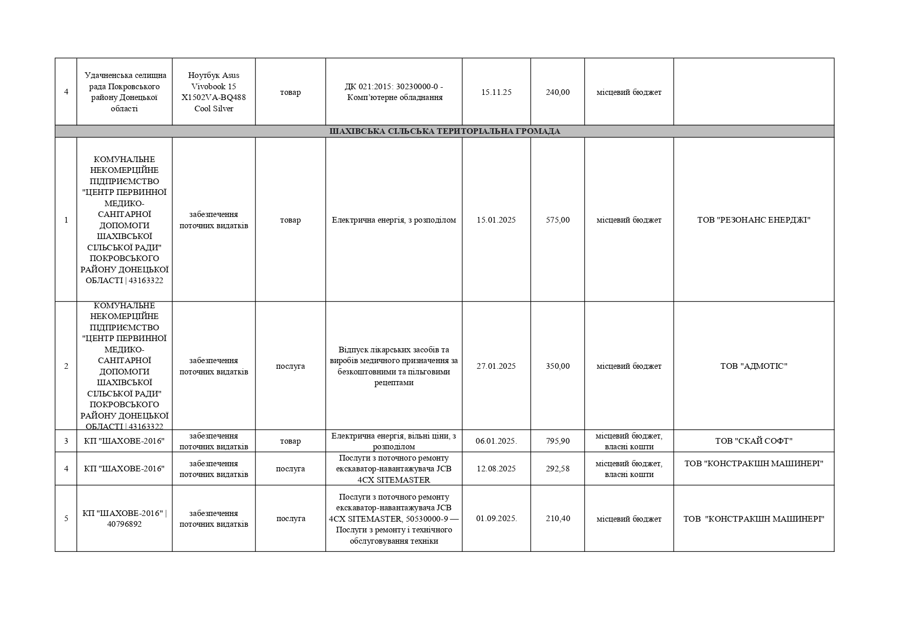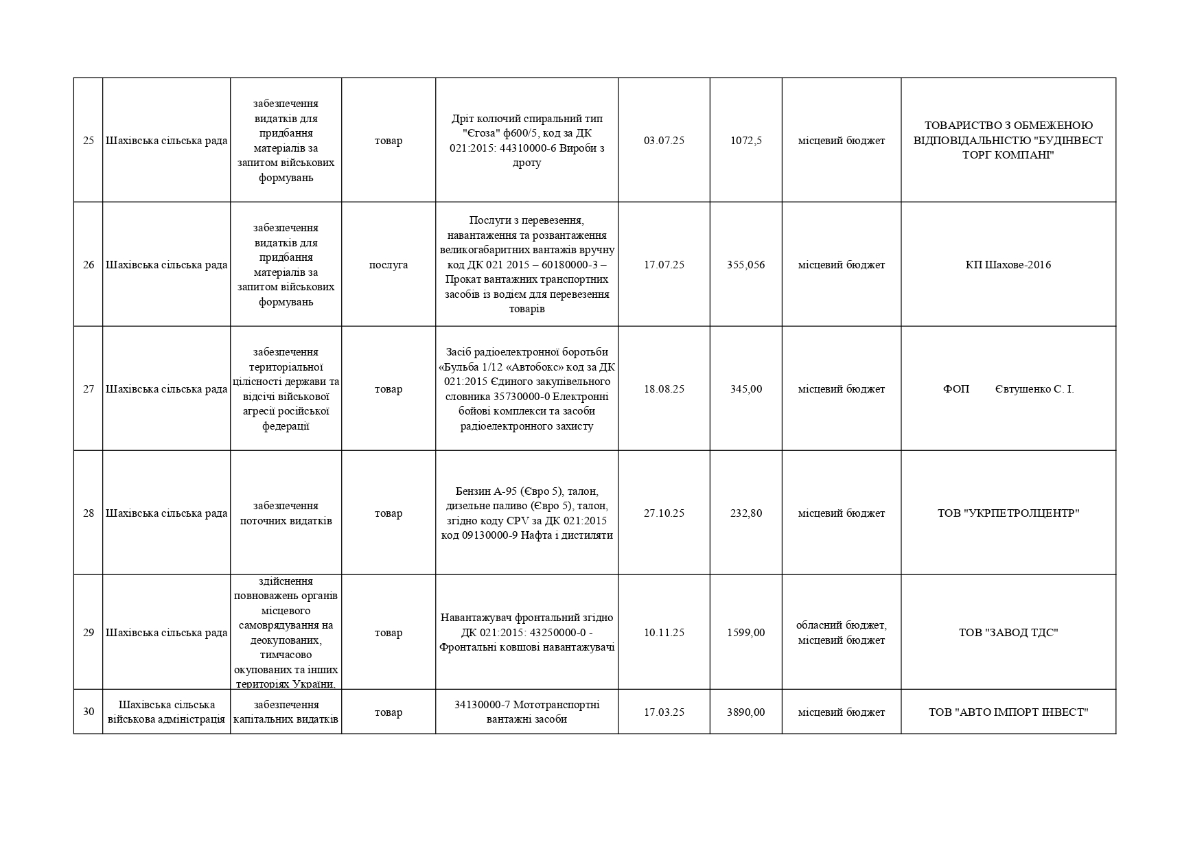 Плани публічних закупівель по Покровському району