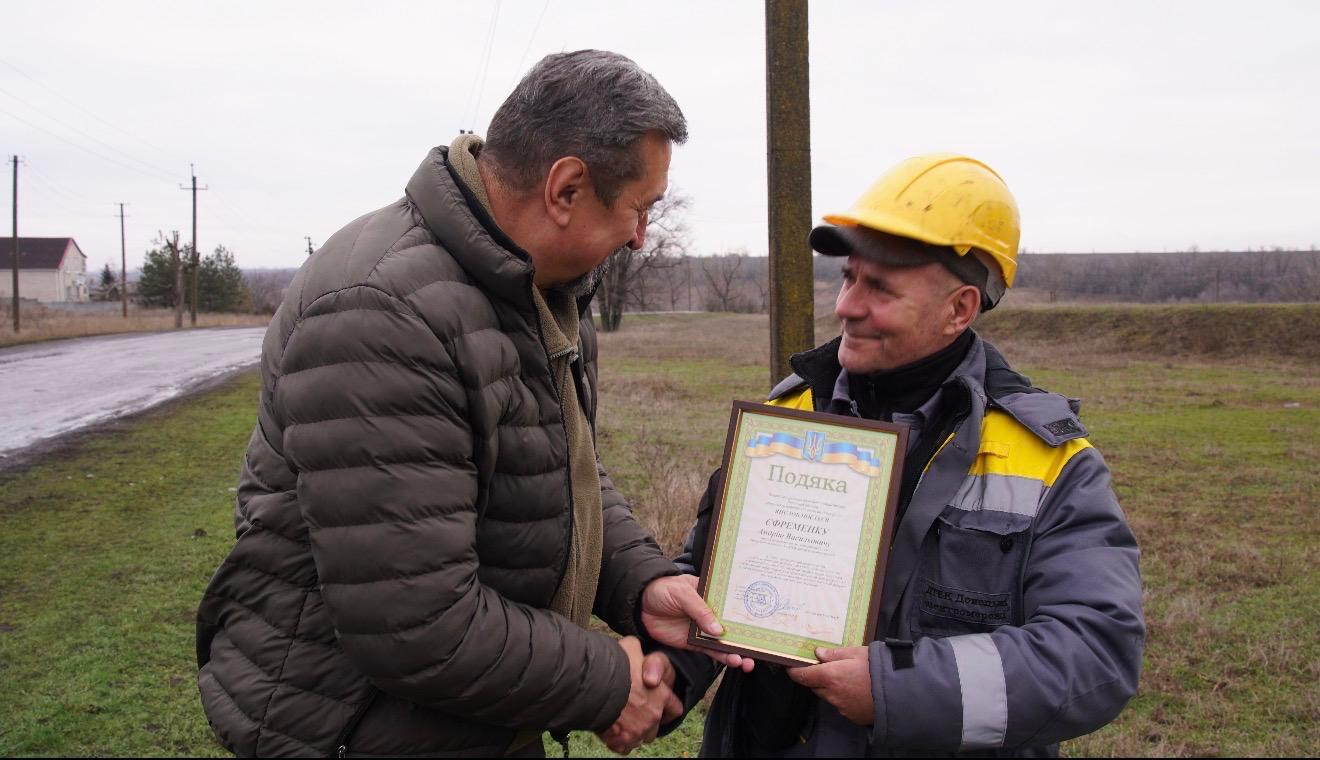 З нагоди професійного свята — Дня енергетика голова Покровської райдержадміністрації, начальник районної військової адміністрації Володимир Колосов відвідав місця ліквідації аварій енергетичних об’єктів та відзначив кращих працівників Покровського регіону АТ “ДТЕК Донецькі електромережі”.