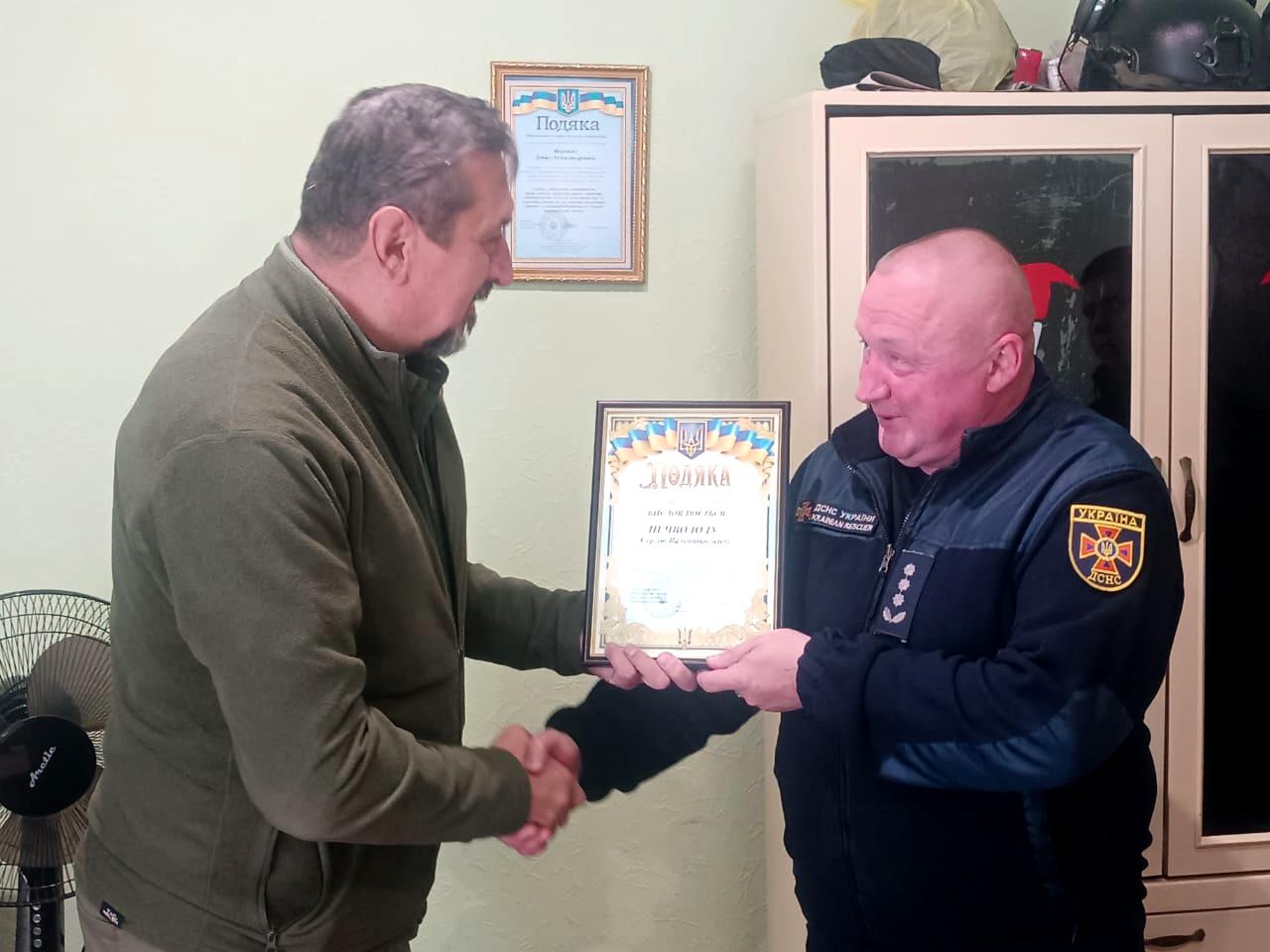 За особисту мужність і самовідданість, виявлені у забезпеченні ліквідації наслідків надзвичайних ситуацій в умовах воєнного стану, сумлінне та бездоганне виконання службових обов’язків вручив подяки Покровської райдержадміністрації та висловив слова вдячності.