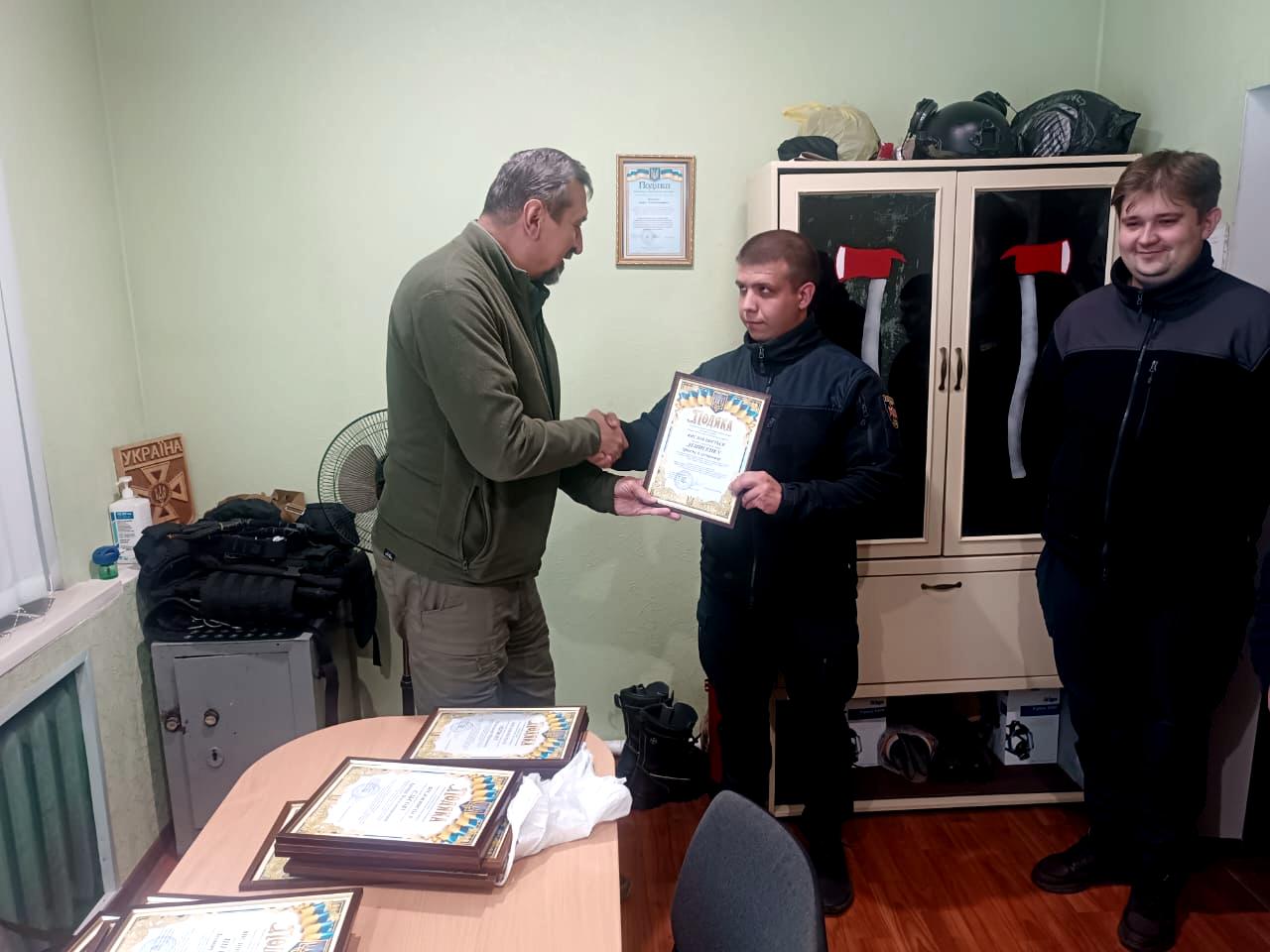 За особисту мужність і самовідданість, виявлені у забезпеченні ліквідації наслідків надзвичайних ситуацій в умовах воєнного стану, сумлінне та бездоганне виконання службових обов’язків вручив подяки Покровської райдержадміністрації та висловив слова вдячності.